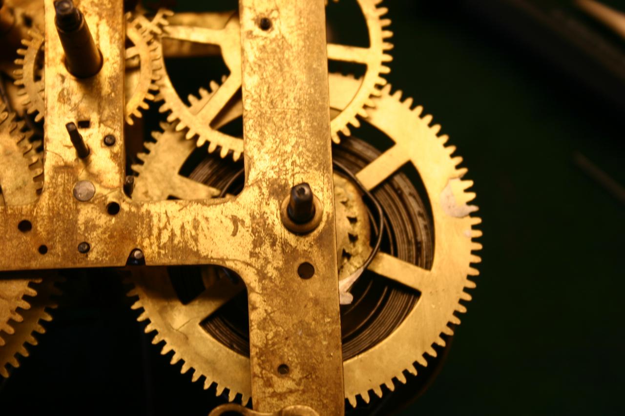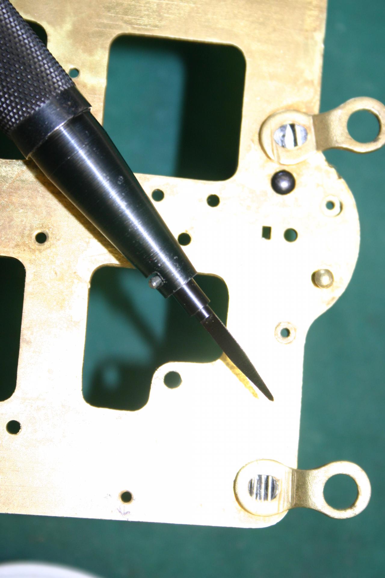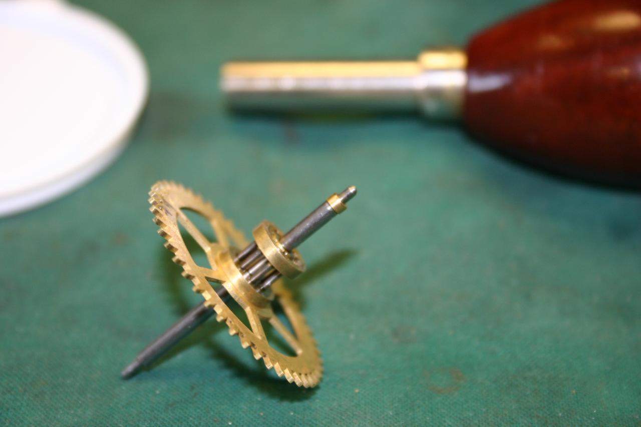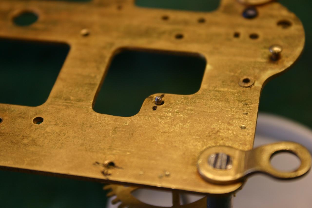 Lets go through a typical repair job. In this case we are working on a Seth Thomas mantle clock, manufactured in 1906. It came into our shop because it had stopped working and the owner didn't know why. We discovered that the gear on the main wheel of the time side train had broken teeth and that bushings were needed on some of the pivot holes. To see what we did, with an explanation of the repair process, click on the first picture, upper left hand corner, and when the image loads, click the advance icon and watch the slide show.